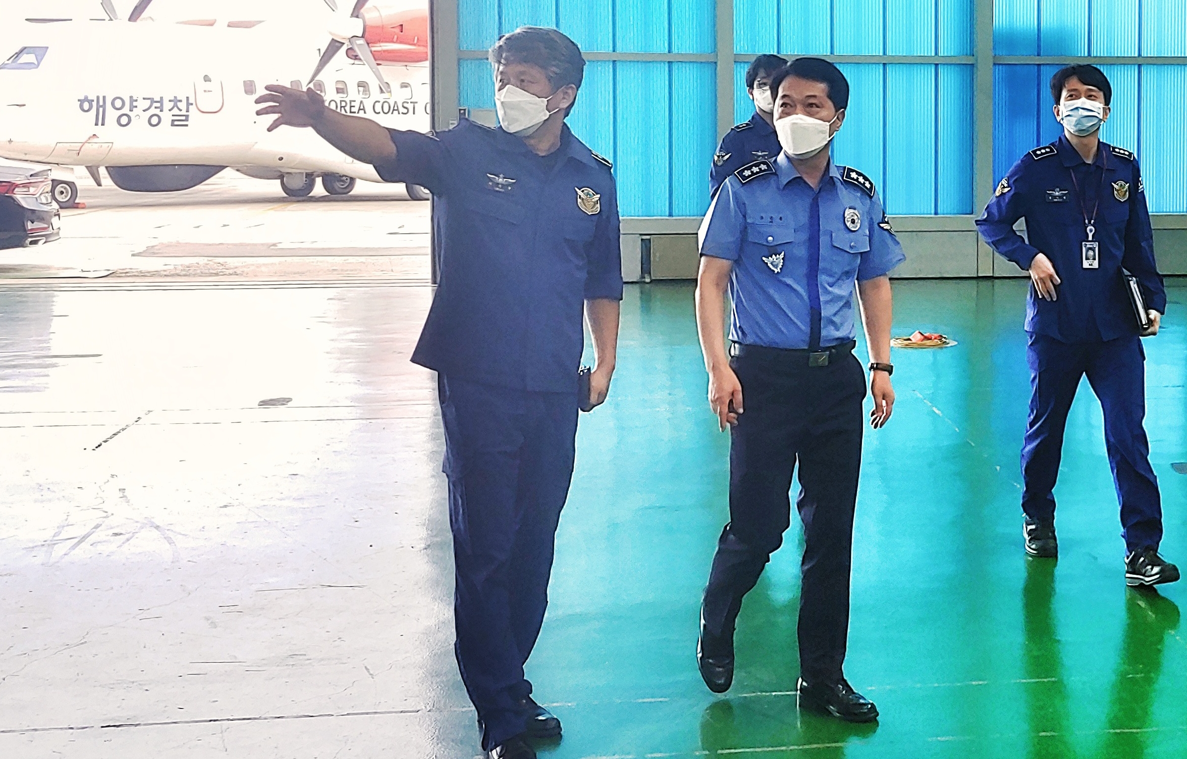 오윤용 중부지방해양경찰청장이 11일 오전 항공대(김포)를 찾아 현장점검을 하고 있다.