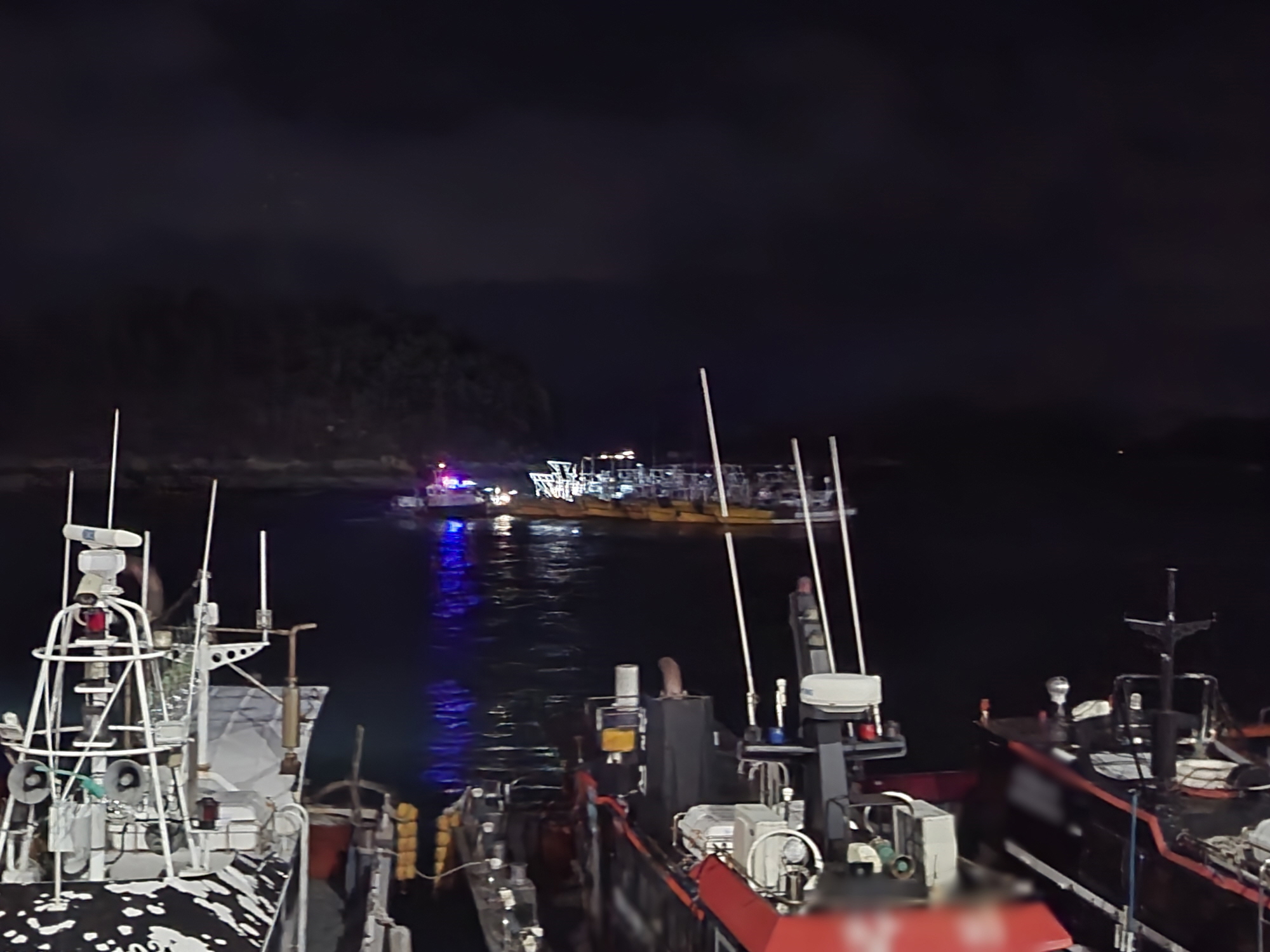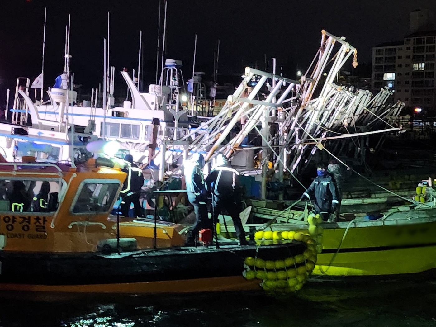 여수해경은 신고접수 후 경비함정과 구조대를 즉시 급파하여 선착장 약 50m 해상에 표류 중인 잠수기 어선 8척이 붙어있는 상태로 표류한 것을 확인하고 선박이 더 이상 밀리지 않도록 안전 조치했다.