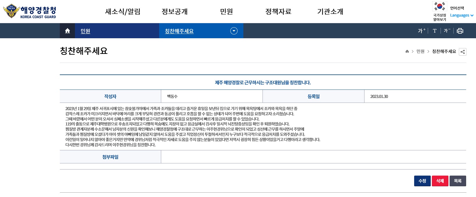 한편, 사고 당시 현장에 있던 A군의 삼촌은 오늘(30일) 해양경찰청 홈페이지 ‘칭찬해주세요’ 게시판에 이 경위의 선행에 대한 감사의 마음을 전하는 글을 올린 것으로 알려졌다.