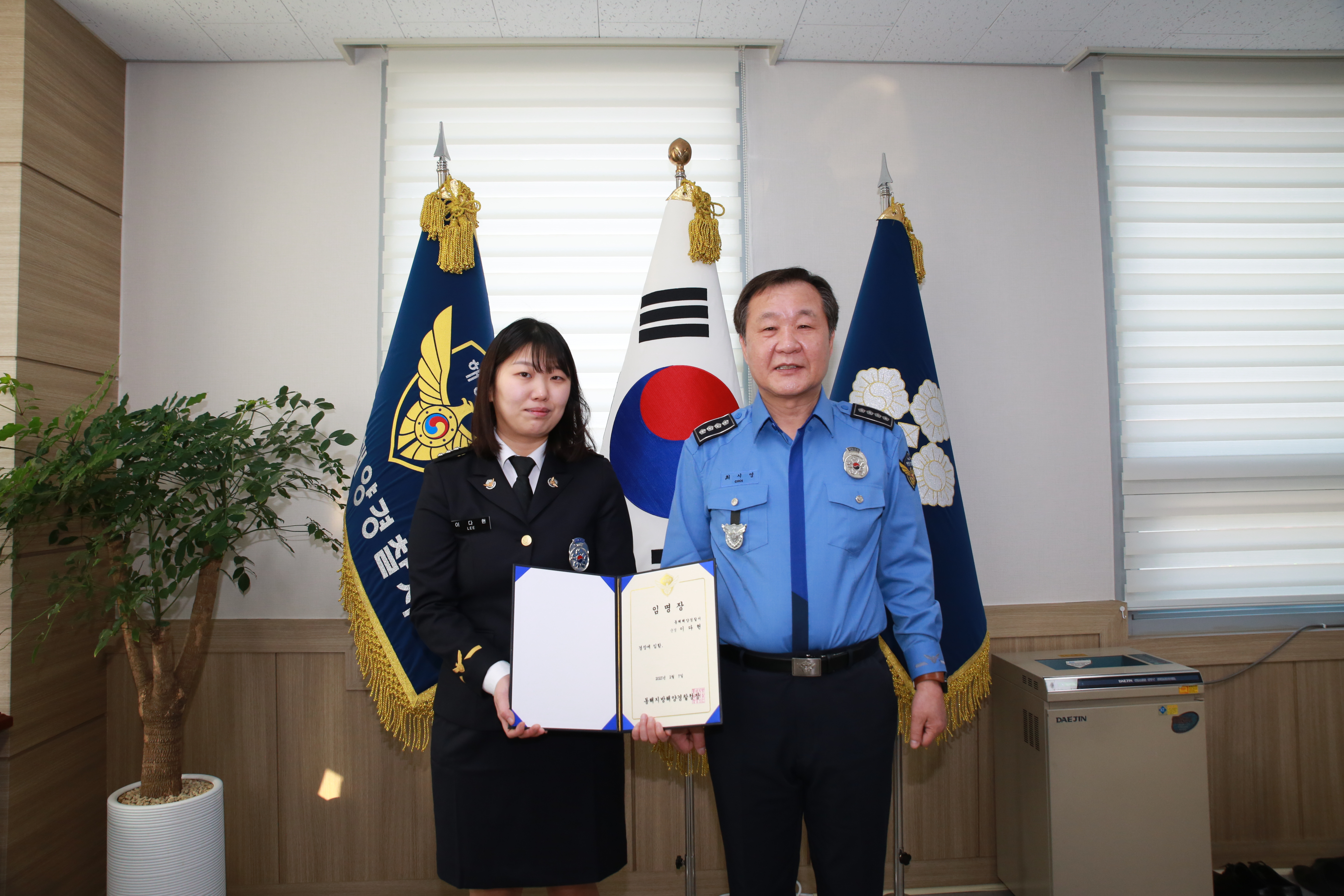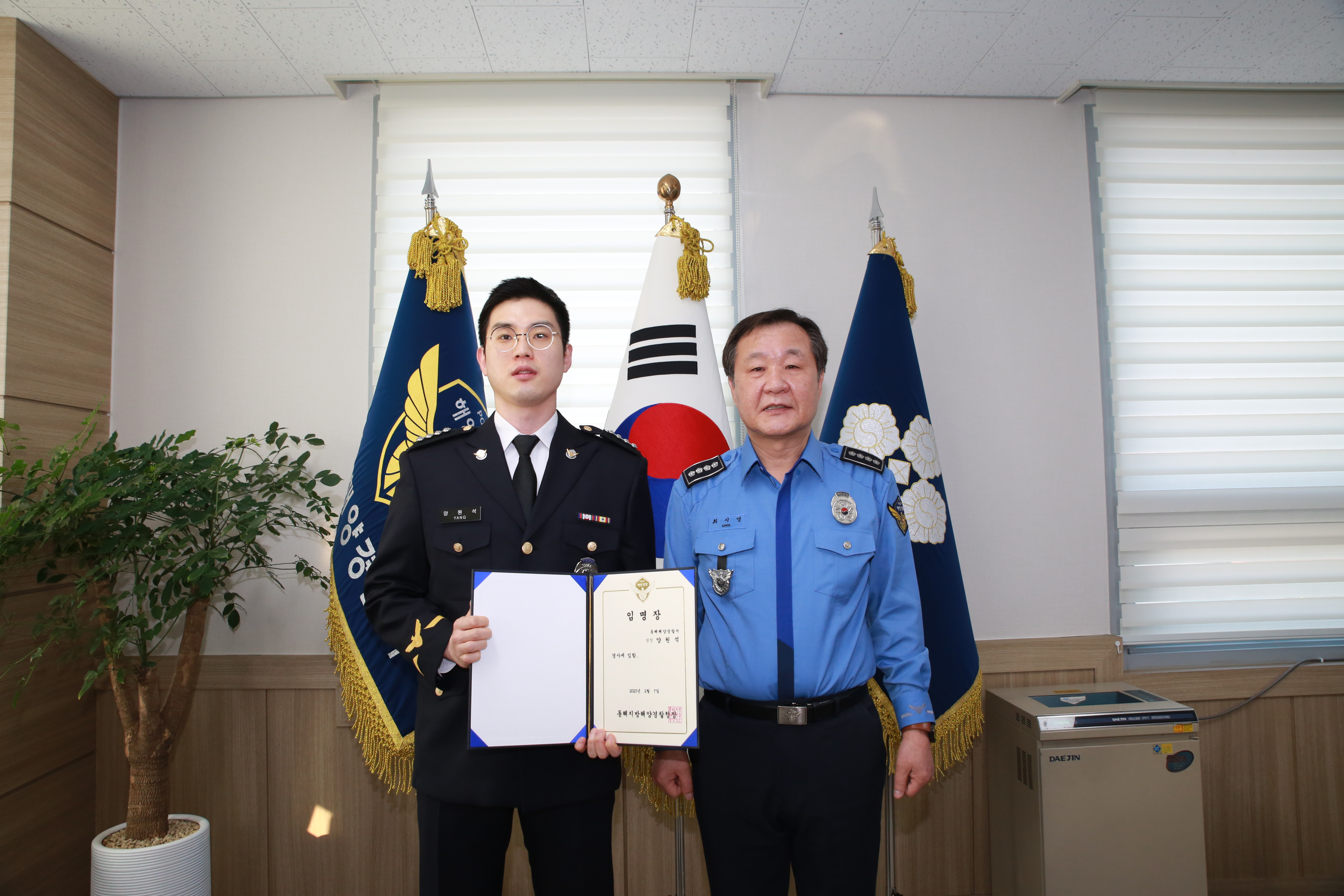 동해해양경찰서 최시영 서장은 “영예로운 승진을 진심으로 축하한다”며 “해양경찰로서 한결같은 마음으로 주어진 임무에 책임감을 가지고 안전한 동해바다 만들기에 최선을 다해주길 바란다”고 말했다.