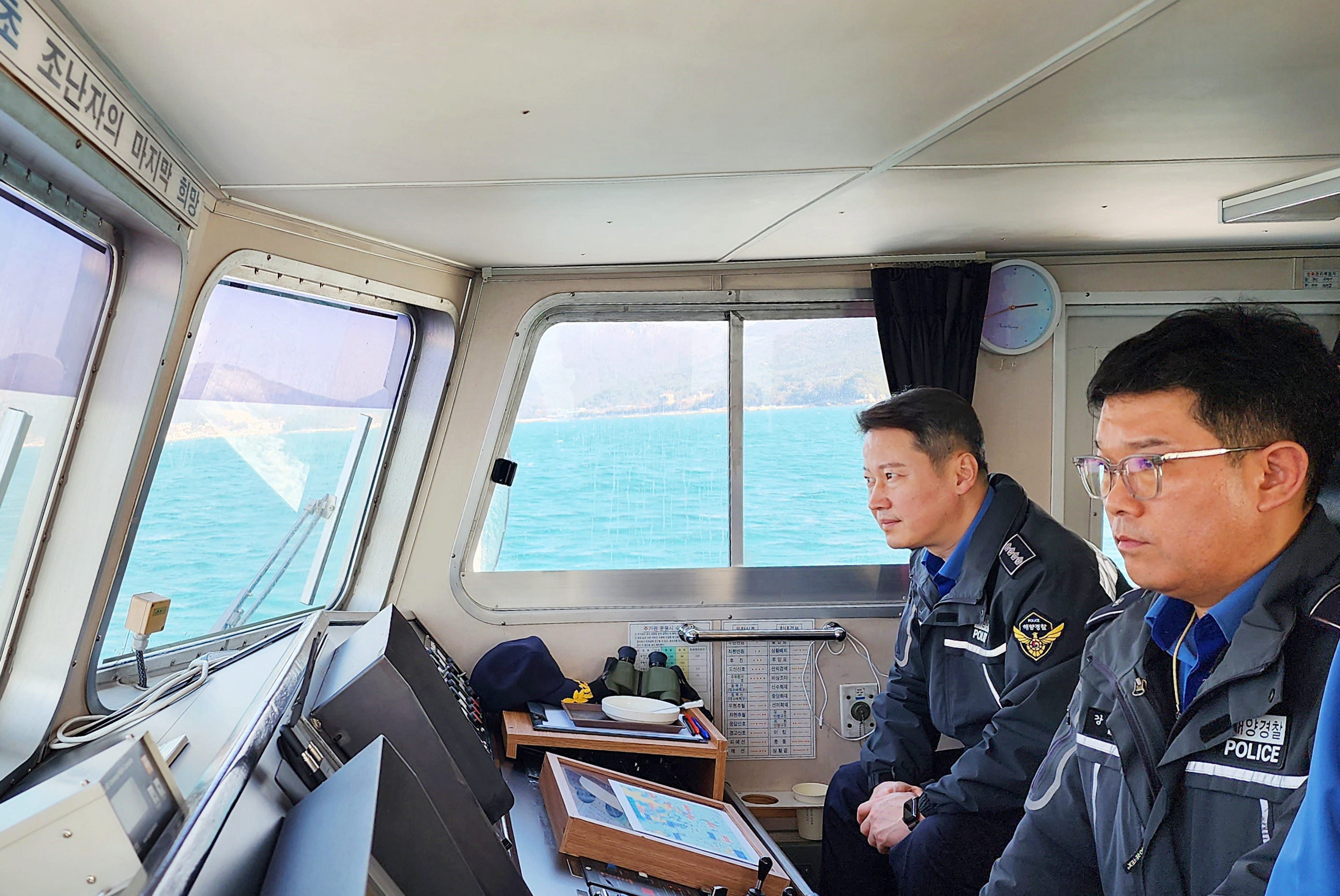 통영해양경찰서 주용현 서장(총경)이 오늘(7일) 경비함정을 타고 해상 치안 현장을 직접 둘러보았다.