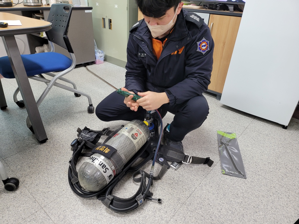 트래킹 클리너는 화재진압용 공기압축용기가 결합된 등지개에 클리너 건을 결합해 공기압을 활용하며 전기용품 등에 쌓인 먼지와 이물질을 제거할 수 있다.