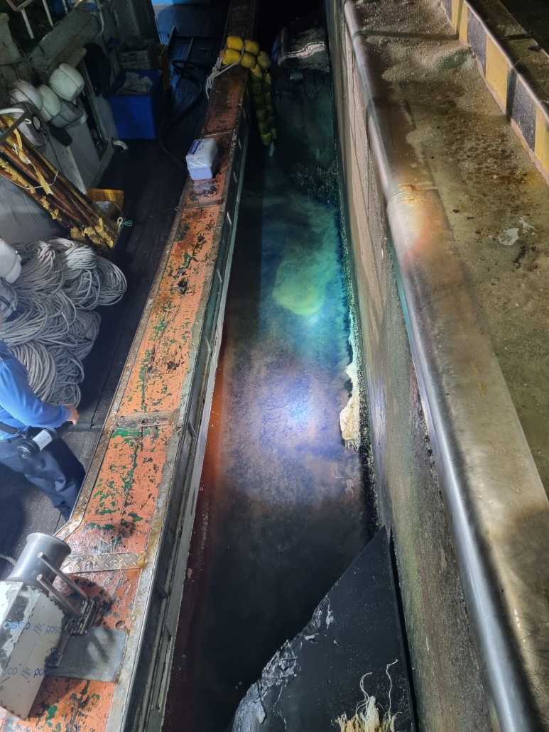 현장조사 중 화순항에 피항중이던 어선A호(39톤, 여수선적)에 대해 선박 정밀검사와 탐문을 실시한 결과, 기관실 바닥에 설치된 잠수펌프를 실수로 작동해 선저폐수 약 60리터를 해상으로 배출했다는 외국인 선원의 진술을 토대로 해당 선박 선장의 진술을 확보 및 적발했다.