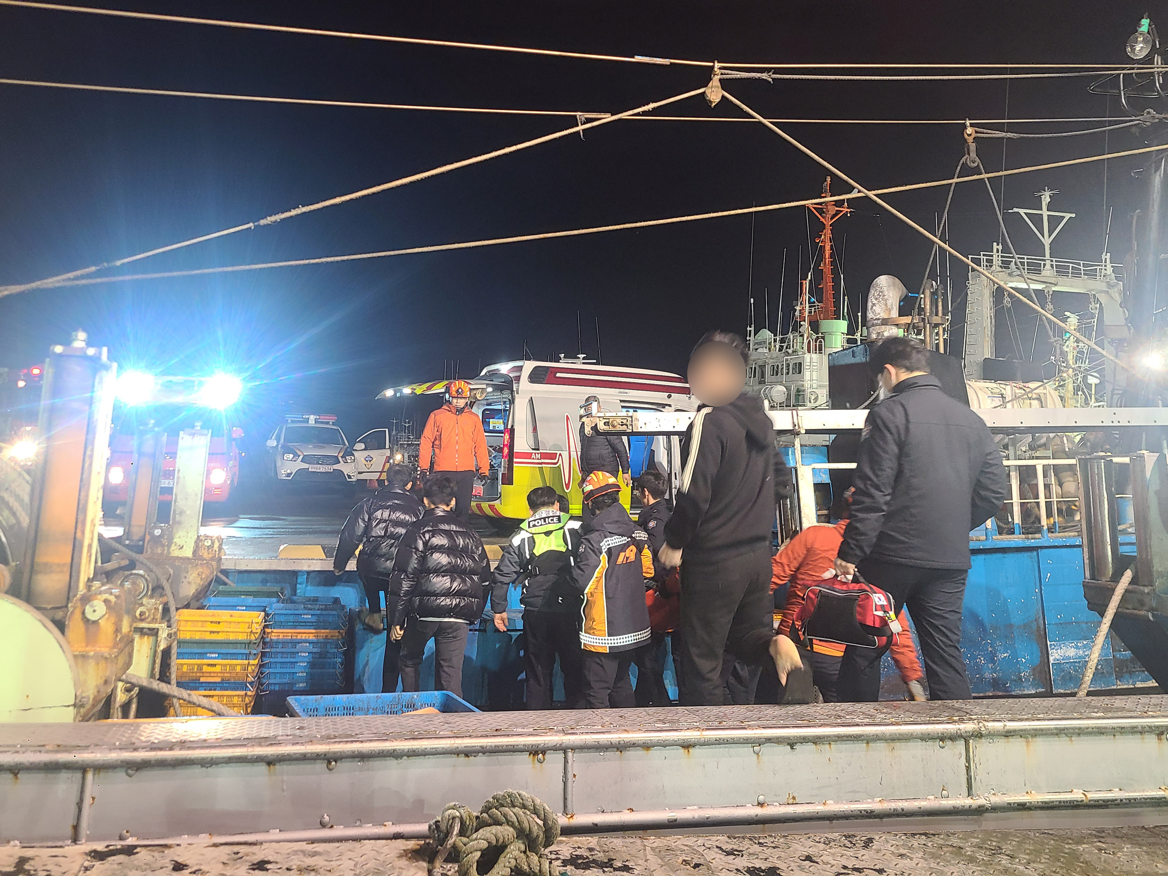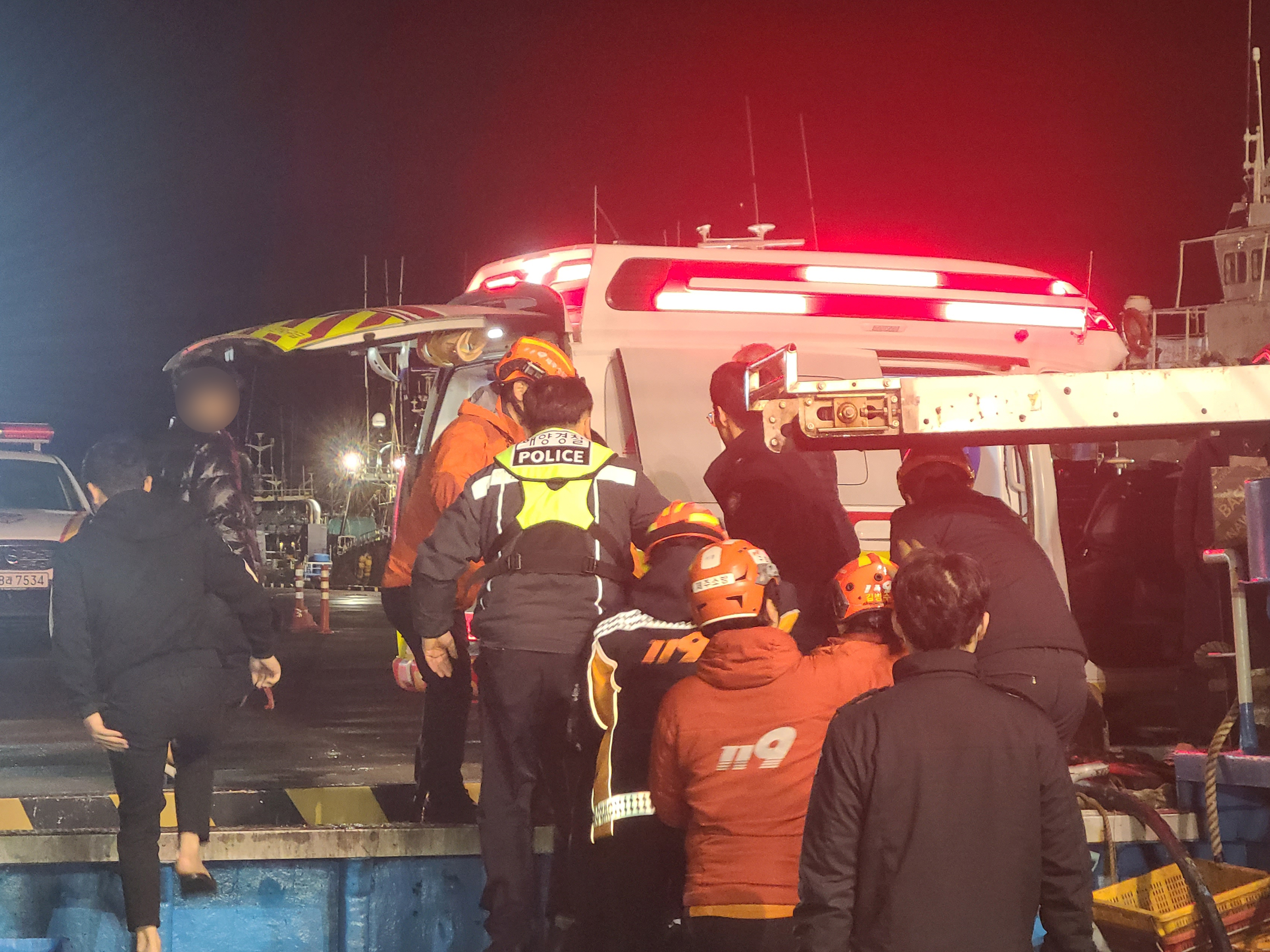 현장에 도착한 서귀포해경 화순파출소와 서부소방서 안덕119센터가 합동으로 선원 3명(남성, 60대 1명, 50대 2명)을 부두 위로 올려 119구급차량을 이용해 의료기관으로 이송했다.