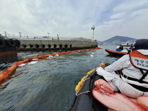 - 정박 급유선 기름 이적 작업중 기름 일부 유출로 해양경찰 긴급 방제 마무리 중 - 여수해양경찰서(서장 박...