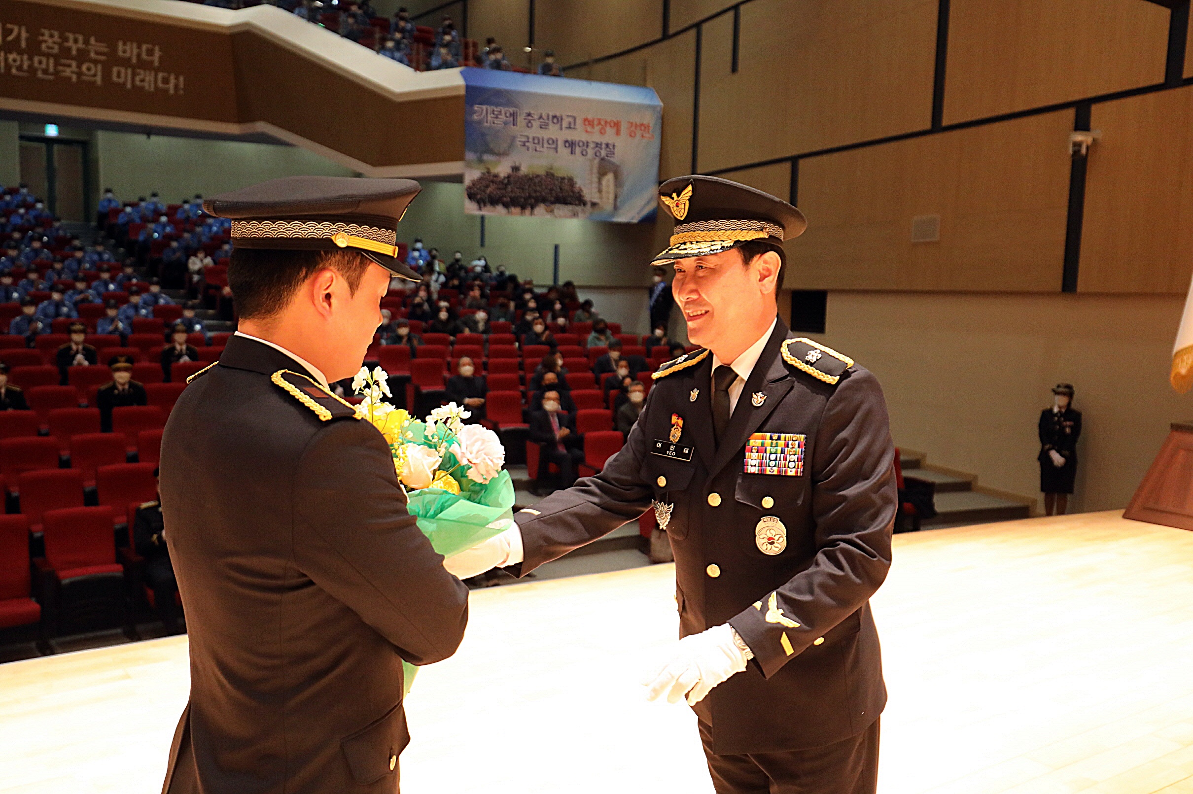 여인태 교육원장은 치사를 통해 ‶국제 해양질서 및 해양안전 환경이 급속도로 변화하는 현 시점에서 초급 간부들의 각오도 남달라야 한다″며 ‶국민의 안전을 최우선으로 여기고 국민의 든든한 동반자가 되고자 했던 처음 다짐을 절대 잊지 않길 바란다″고 당부했다.