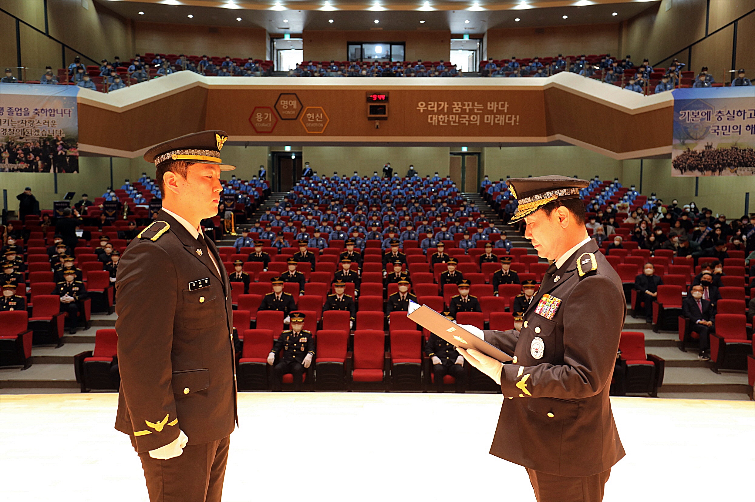 한편 이번 졸업식에서 이승찬 경위(31세)가 대통령상, 김태헌 경위(30세)가 국무총리상, 금창인 경위(25세)가 행정안전부장관상, 김경준 경위(32세)가 해양경찰청장상, 홍승환 경위(37세)가 해양경찰교육원장상을 각각 받았다.