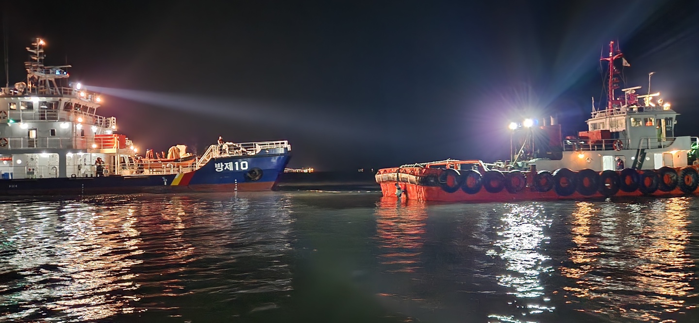 보령해경에 따르면 오늘(22일) 02:01경 보령시 오천항 북서방 2.2해리 해상에서 예인선 A호가 부선 B호를 예인해 출항 중 인근 해상에 떠 있던 오탁방지망을 회피하기 위해 엔진을 사용하다가 예인줄이 스크루에 감겨 연안 쪽으로 표류 중이라는 신고를 접수했다.
