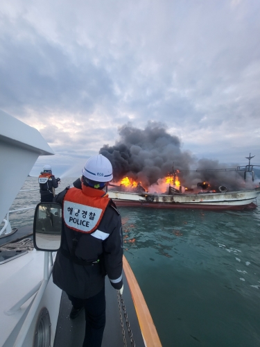 사진 설명 여수해양경찰서(서장 박제수)는 “여수 금오도 앞 해상에서 9톤급 어선이 화재가 발생해 진화 과정에...