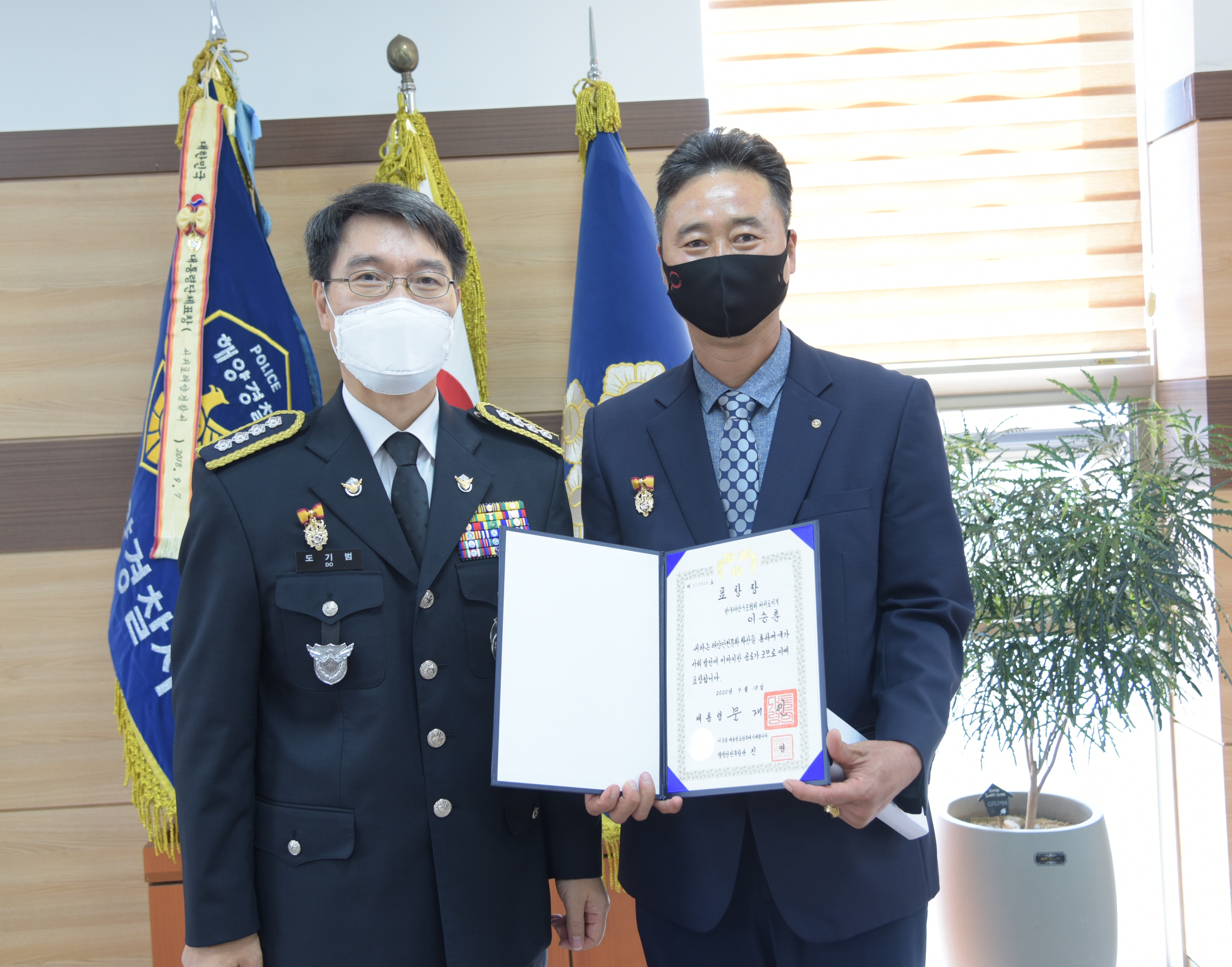 서귀포해양경찰서(서장 도기범)는 “제67주년 해양경찰의 날”을 맞아 그동안 해양구조와 해양안전을 위해 헌식적으로 활동해 온 민간협력 유공자들에게 정부포상 전수 및 감사장을 수여하였다고 15일 밝혔다.