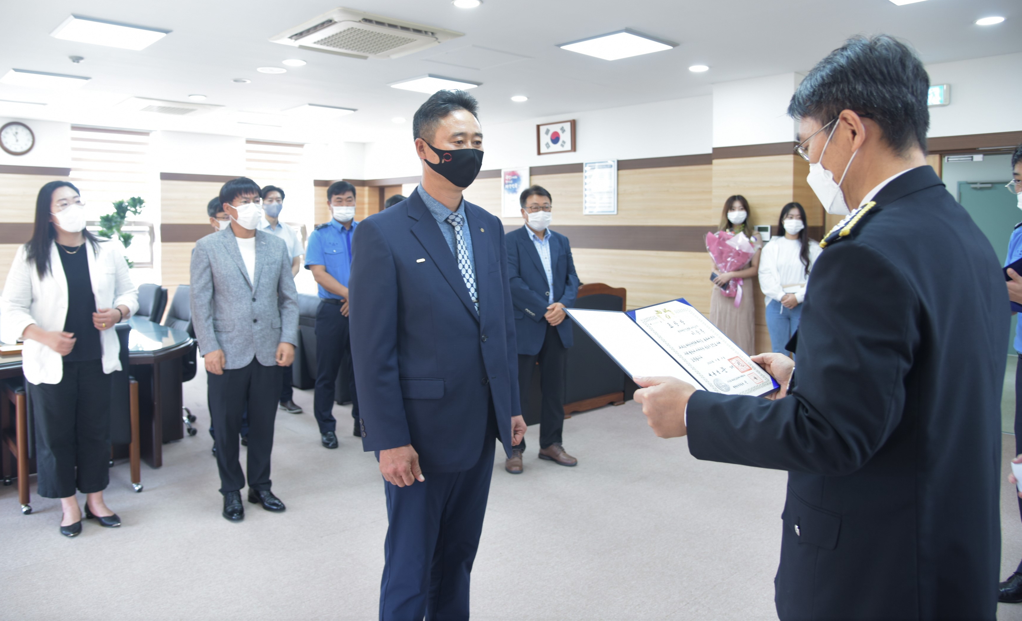 이날 지역 내 수색구조, 해양사고 예방 교육·홍보, 인명구조, 구난 전문가 양성에 기여한 공로로 한국해양구조협회 이승훈 위원에게 대통령 표창을 전수하였다.