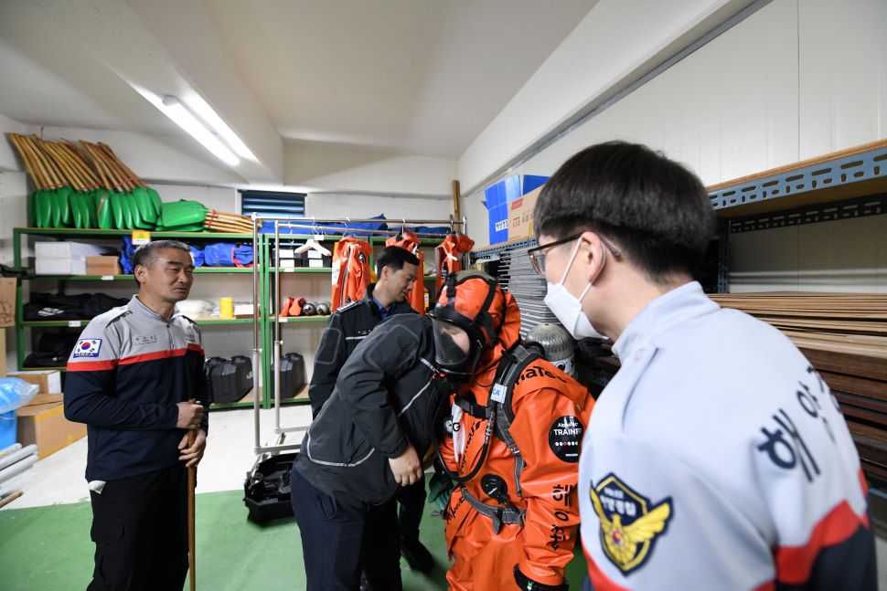 완도해경은 해상화학사고 발생시 신속하고 안전한 대응을 강조하며 사고대응장비의 관리 상태를 점검하고