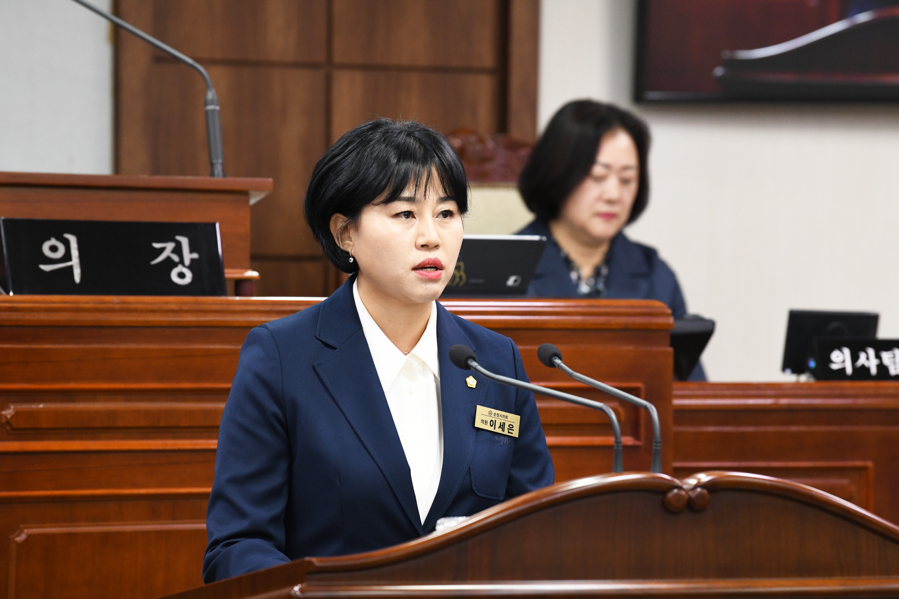 이세은 의원은 “기득권 유지, 지대 추구에 매몰된 나라에 미래가 있을 수 없다”며 “노동ㆍ연금ㆍ교육 3대 개혁이 조속히, 확실히 실현되도록 추진에 박차를 가할 것을 중앙정부에 강력히 촉구한다”라고 주장하였다.
