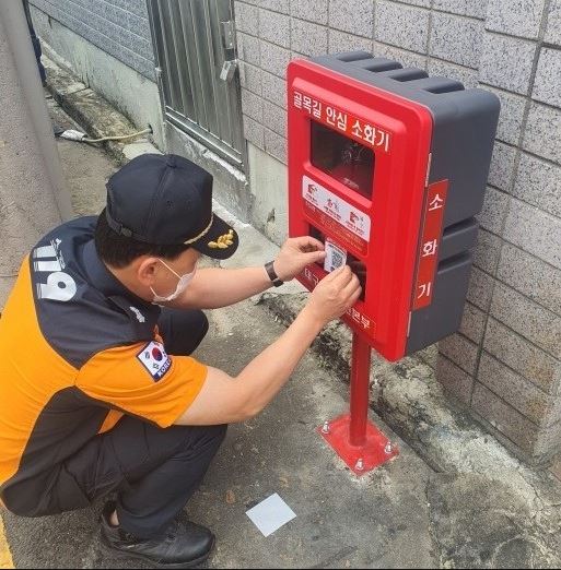 이날 과역안전센터장과 설치업체는 소화전함의 탈락여부와 소화기 등 적정 적재 여부 확인 및 마을주민들에게 소화기 사용법과 관리요령을 교육하였다.
