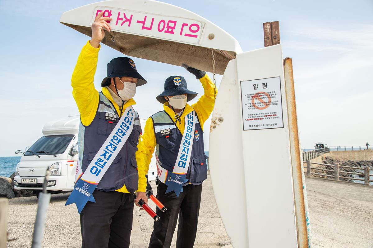 연안안전지킴이는「연안사고예방법」에 따라 해양경찰을 도와 연안사고를 체계적으로 예방할 목적으로 연안의 특성을 잘 아는 지역주민을 서귀포 관할 위험 장소 4개소(종달해안, 위미항, 법환해녀체험장~서건도, 모슬포항)에 개소 당 2명씩 8명을 배치하여 안전계도, 안전시설물을 점검하고, 연안사고 발생 시 구조지원 등의 업무를 수행할 예정이다.