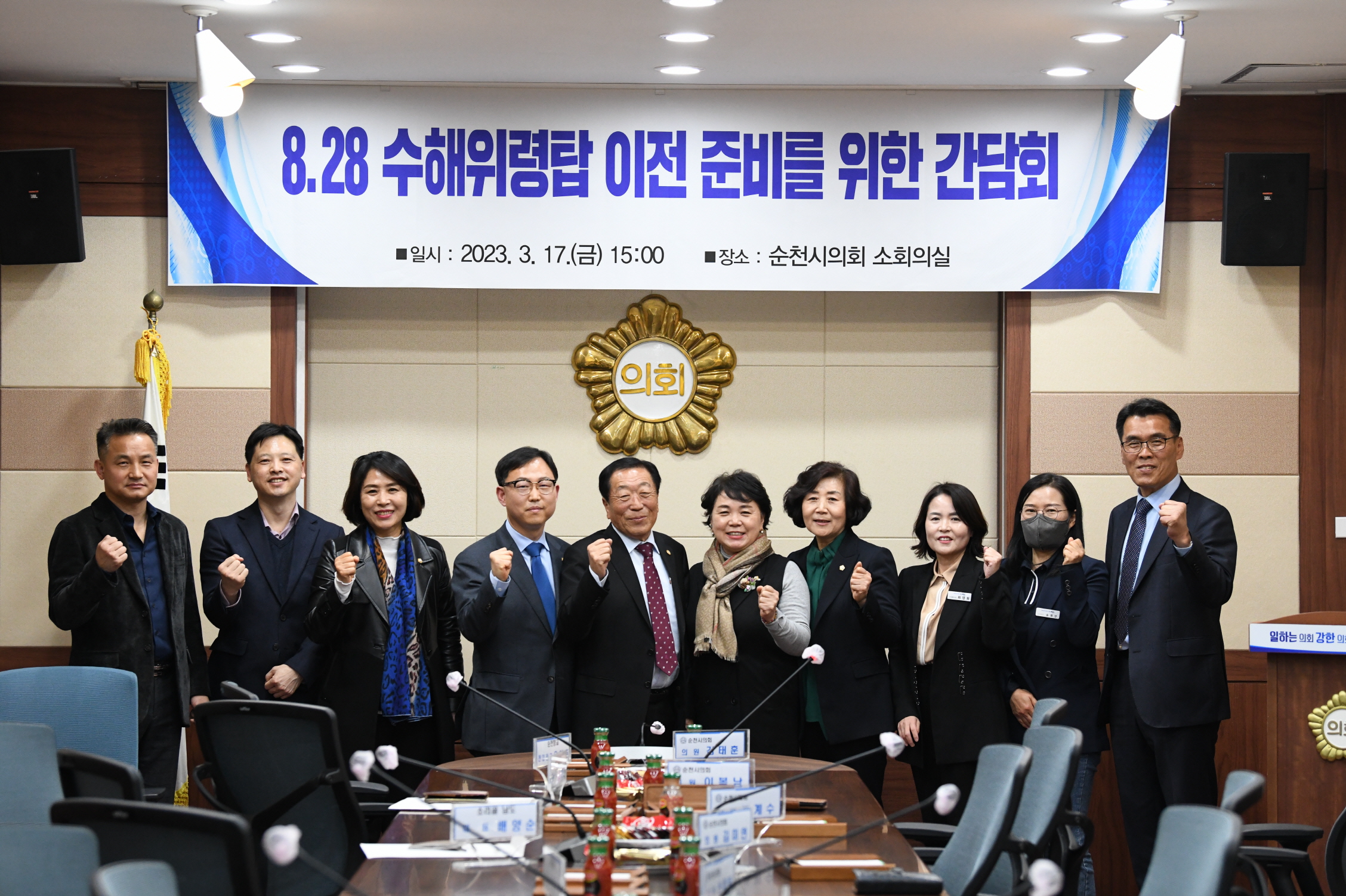 순천시의회 김태훈 의원은 17일 순천시의회 소회의실에서 수해피해 위령탑 이전 준비를 위한 간담회를 가졌다.