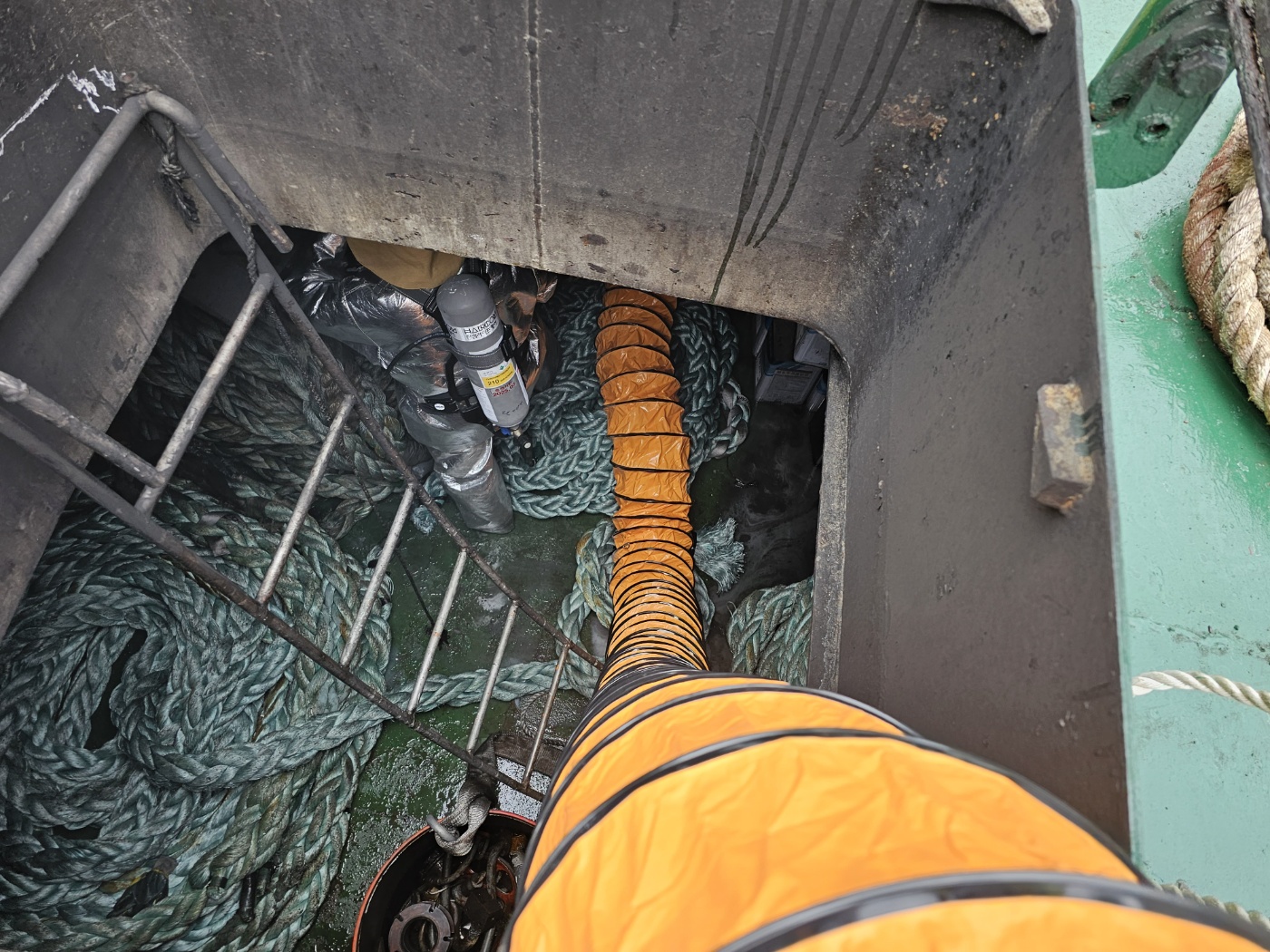 다행히 큰 불은 진압되었지만 남아있는 불씨를 확인하기 위해 배풍기를 이용해 창고 내에 있는