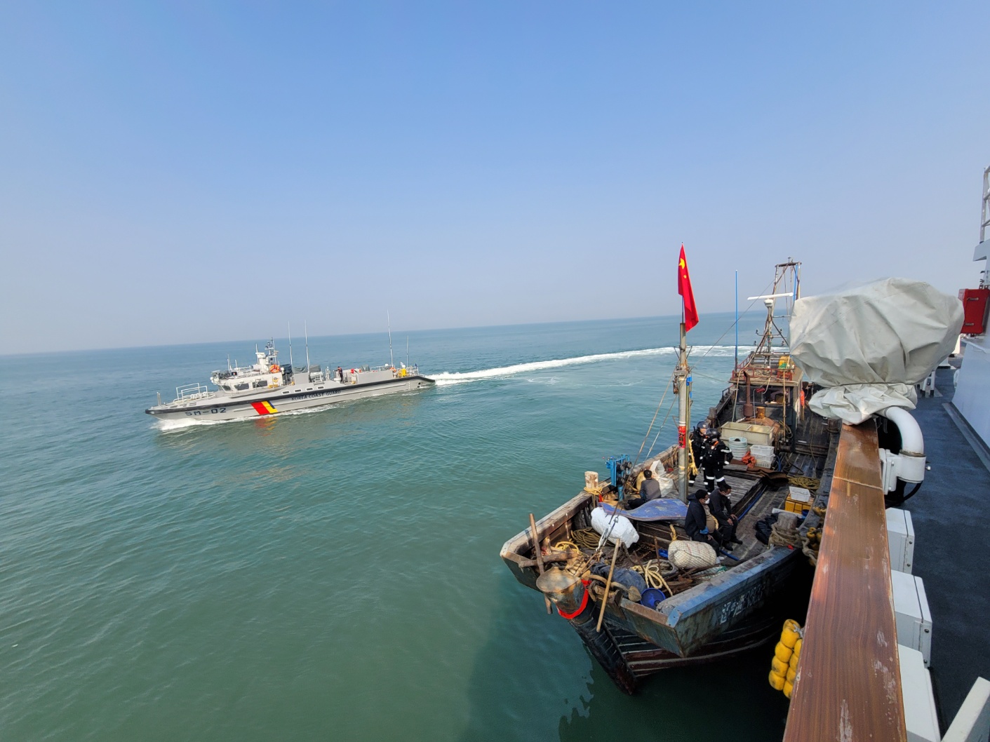 불법조업 중국어선을 나포종료후 이동시키고 있다