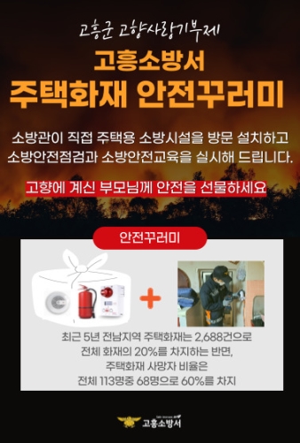 전남 고흥소방서(서장 문병운)가 ‘주택화재 안전 꾸러미’를 고향사랑기부금 답례품으로 고흥군과 협업하여 기초자...