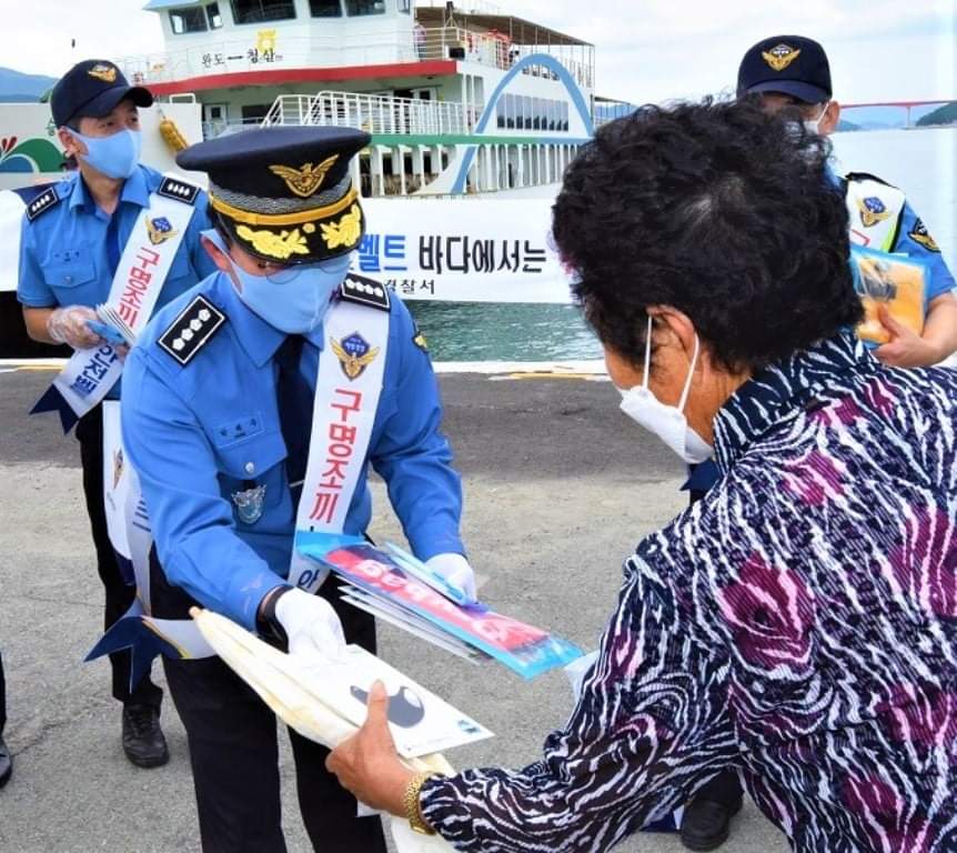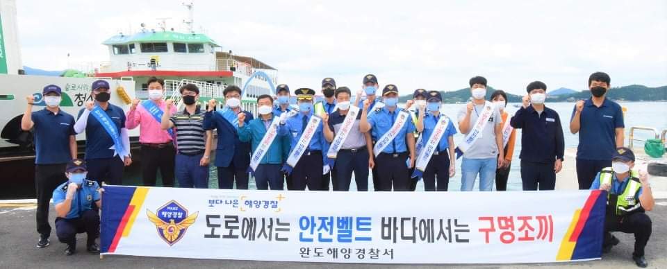 완도해경에 따르면 지난 25일 유관기관(전남도, 한국해양교통안전공단, 한일고속) 관계자 등 총 18명이 참여하여 완도여객선 터미널에서 청산․제주도 입도객 300여명을 대상으로 홍보스티커가 부착된 마스크․물티슈 등을 배부하며 구명조끼 입기 홍보 캠페인에 나섰다.
