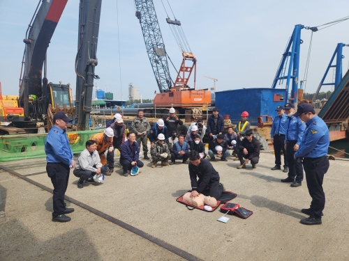 - 해상 공사장『찾아가는 적극행정 응급처치 교육』실시 - 포항해양경찰서(서장 성대훈)는 지난 3월 30일과 ...