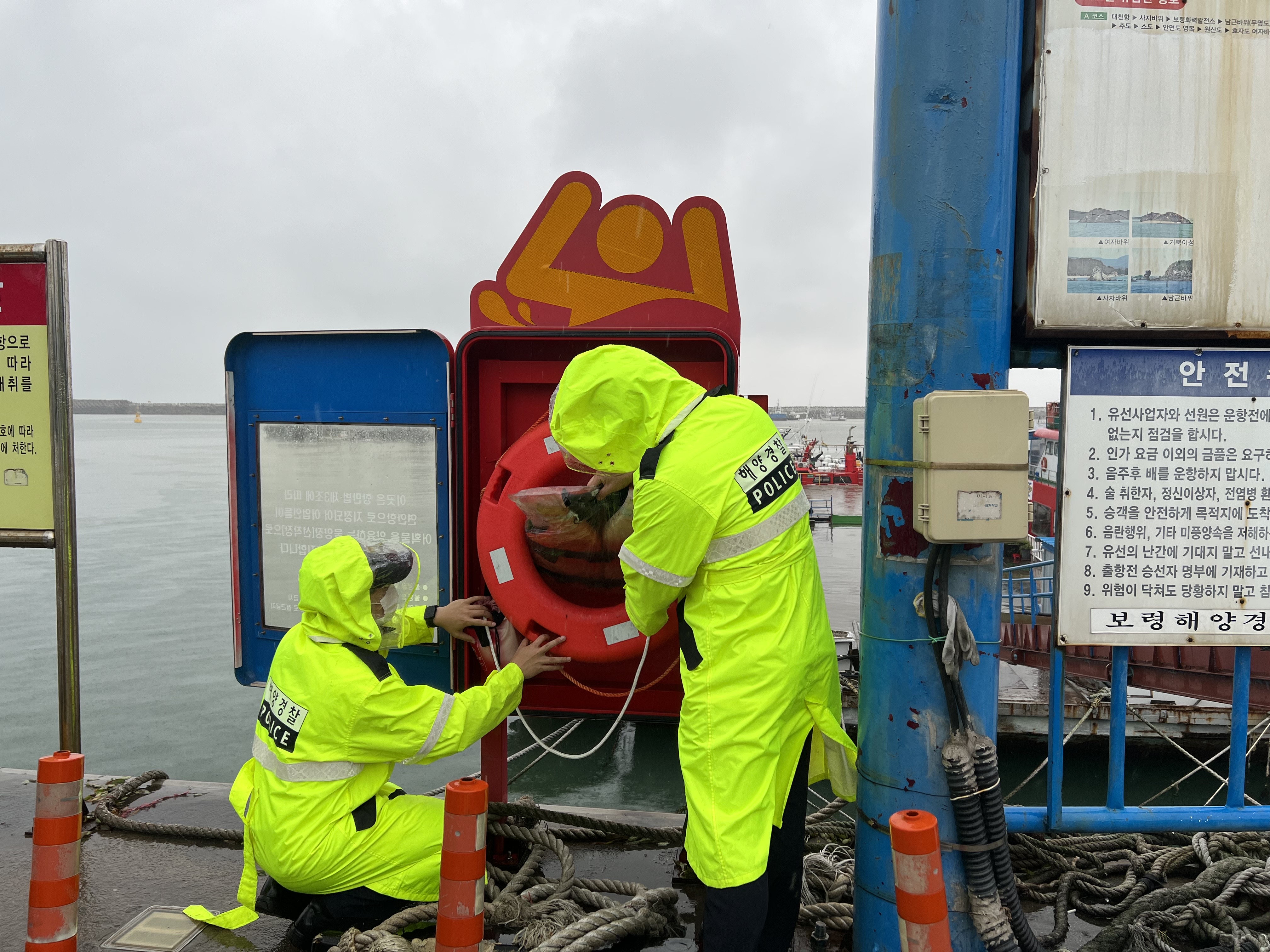 보령해경에서는 파출소 옥외 전광판, 항내 정박선박의 계류상태 점검, 선주·선장 대상 위험안내문자 발송 및