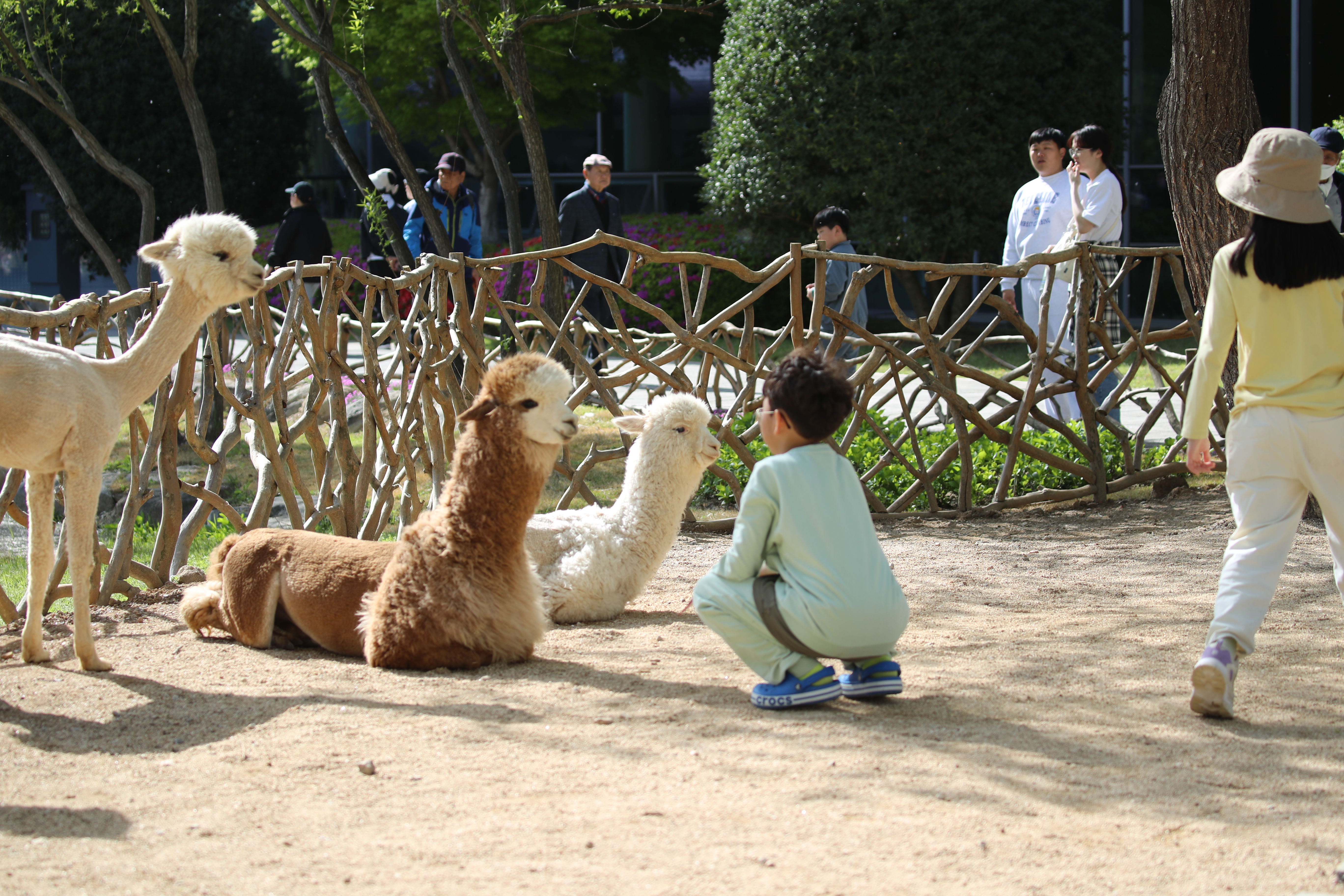 이곳 어린이동물원에서는 앵무새와 알파카등 다양한 동물들을 만져보고 즐길수있어 인기가 많다!
