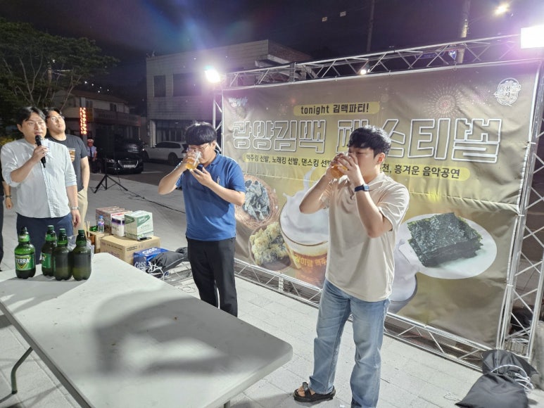 축제 현장에서는 치킨, 김밥, 김부각, 팝콘, 솜사탕, 빵, 떡 등 먹거리가 무료로 제공되고, 가족 단위 방문객을 위해 친환경 야외용 매트가 무료 제공되며, 행사 전 안전 점검을 통해 위험 요소 제거를 완료하여 참여자들이 안전하게 수변축제를 즐길 수 있도록 했다.