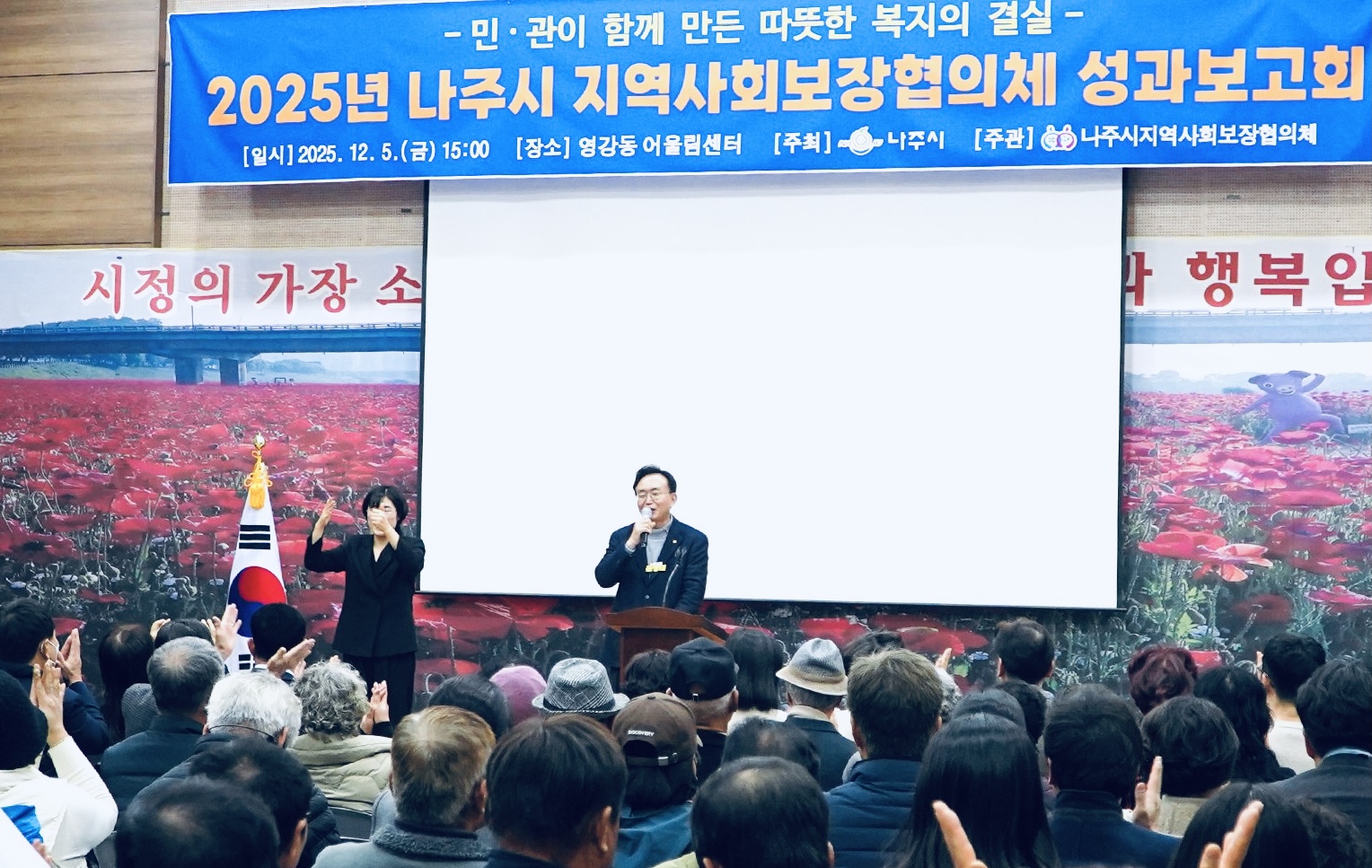 겨울의 문턱, 나주시의 복지 현장이 따뜻한 희망으로 가득 찼습니다. 나주시(시장 윤병태)는 지난 5일 영강동 어울림센터에서 ‘2025년 나주시지역사회보장협의체 성과보고회’를 성황리에 개최하고, 한 해 동안 지역 복지 향상을 위해 헌신한 민·관 협력의 뜻깊은 결실을 돌아봤습니다.