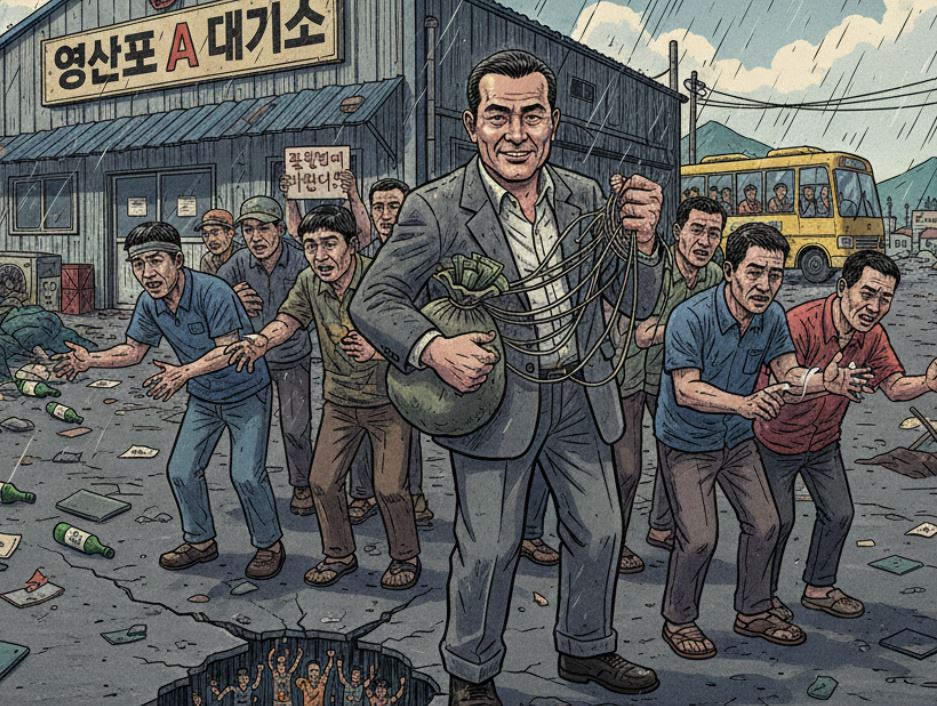 [해륙뉴스1 = 조경수 정치부 국장] 전남 나주 영산포 일대 인력시장이 특정 인력대기소 운영자의 전횡으로 몸살을 앓고 있다. 공직 경력을 방패 삼아 지역사회의 신뢰를 악용하고 있다는 비판이 거세다. 문제의 중심에는 ‘영산포 A 인력대기소’가 있다.