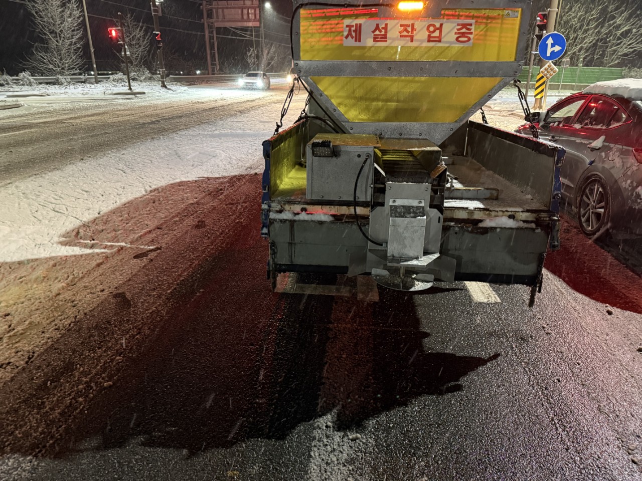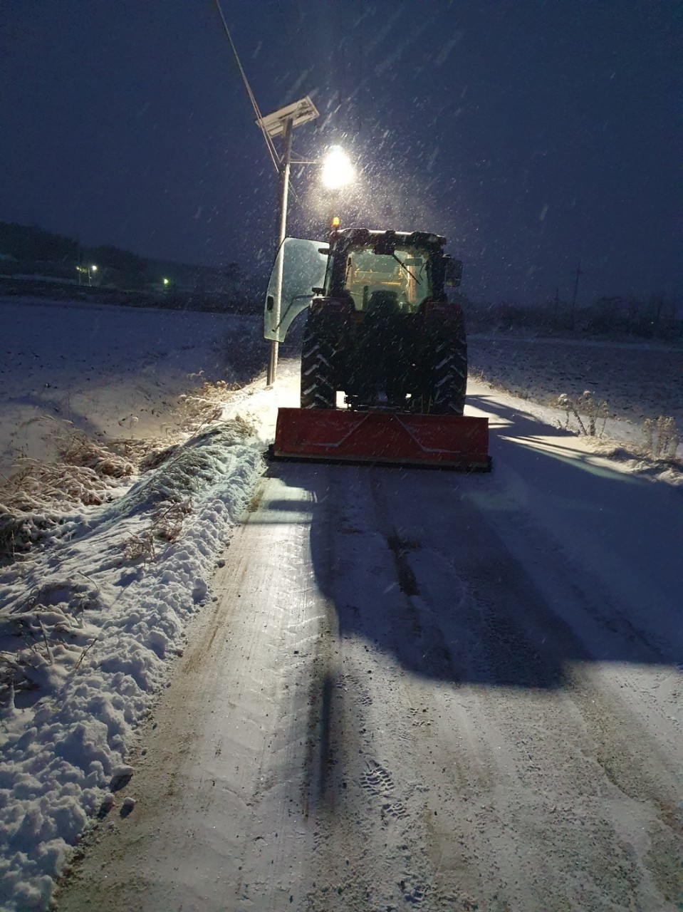 (나주=해륙뉴스1) 조경수 기자 = 병자년 새해를 알리는 하얀 눈이 나주 전역을 뒤덮었습니다. 2일 새벽 5시 30분, 제설 주의보는 해제됐지만 나주시 공직자들의 발걸음은 더 빨라졌습니다.