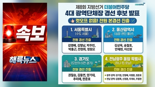 출처/ 페이스북 캡처 제8회 전국동시지방선거를 앞두고 더불어민주당이 4대 광역단체장 경선 후보를 전격 발표했...