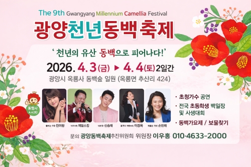 천년의 역사를 품은 옥룡사 동백숲에서 광양의 봄을 알리는 ‘제9회 광양 천년동백축제’가 열린다. 광양동백축제...