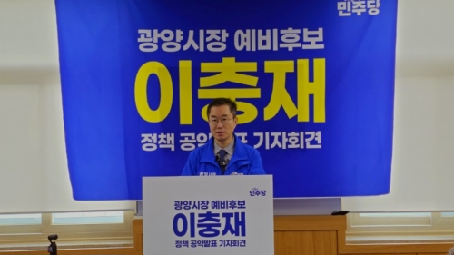 시장 후보 전원 공개 합동토론회 제시한 이충재 예비후보 (출처=이충재 캠프) 광양시장 선거에 출마한 이충재 ...