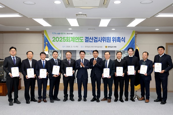 전라남도의회(김태균 의장, 광양 3)는 3월 12일 2025회계연도 결산검사위원 위촉식을 개최했다.