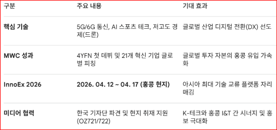 특히 오는 4월 개최될 ‘InnoEx 2026'은 HKETO가 설계한 혁신 로드맵의 정점이 될 전망이다. 한국 미디어 IT 대표 기자 1명을 공식 초청하여 현장의 생생한 파동을 공유하려는 그들의 행보는, 한국과 홍콩이 더 이상 경쟁자가 아닌 ‘기술 동맹’의 파트너임을 시사한다. 질문이 곧 답이라 했던가. HKETO는 우리에게 묻고 있다. "당신의 기술이 세계로 뻗어 나갈 가장 빠르고 안전한 항로는 어디인가?"라고 말이다.