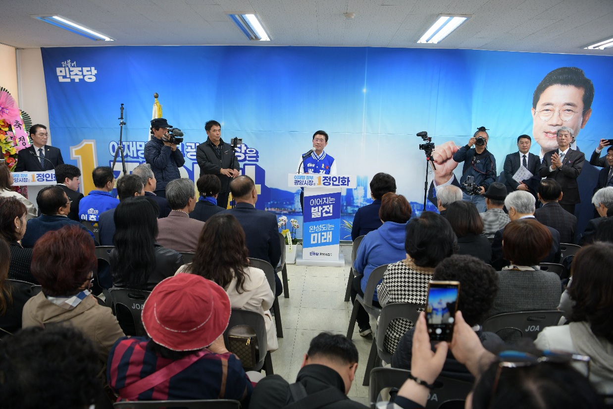 정인화 더불어민주당 광양시장 예비후보는 21일 오전 광양시 백운로 소재 선거사무소에서 개소식을 열고 청년과 시민이 중심이 되는 선거체제를 공식화하며 본격적인 선거전에 돌입했다.