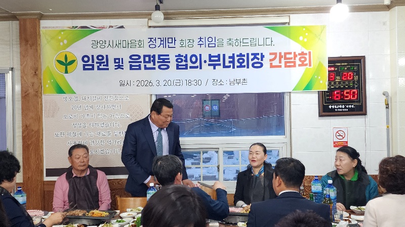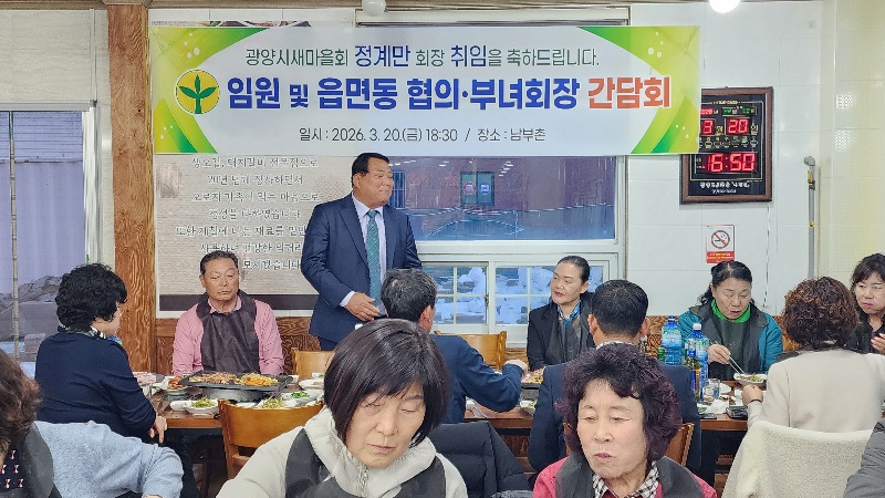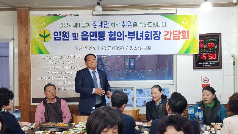 광양시새마을회(지회장 정계만)는 지난 3월 20일 지회장 취임식과 함께 임원(이사), 읍면동 협의회장 및 부녀회장 간담회를 개최하고 조직 결속과 향후 봉사활동 방향을 공유했다.